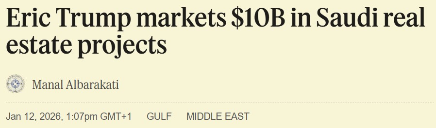Eric Trump comercializa proyectos inmobiliarios saudíes por valor de 10.000 millones de dólares. The Semafor.