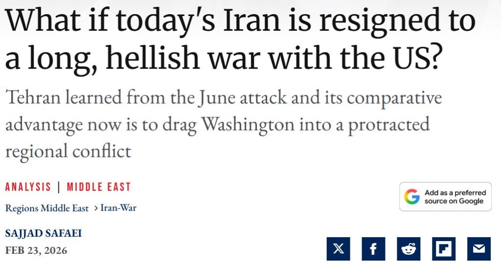 Cuando se barruntaba que Estados Unidos e Israel se disponían a lanzar otro ataque contra Irán, tras haber fracasado en su objetivo de cambio de régimen en junio pasado, el gobierno iraní advirtió que esta vez su respuesta no iba a ser limitada, y que la guerra iba a ser regional. Irán está siendo fiel a su aviso. Teniendo en cuenta el carácter existencial del conflicto, la forma actual de gobierno en Irán tiene más posibilidades de sobrevivir librando una guerra, que habiendo cedido a las exigencias de Estados Unidos en la farsa de negociación.