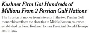 Empresa de Kushner recibió cientos de millones de dos naciones del Golfo Pérsico. New York Times, 30 de marzo de 2023.