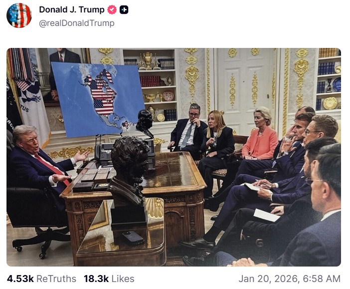 Trump, troleando a los europeos en su red social, con una imagen alterada.