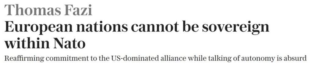 Las naciones europeas no pueden ser soberanas dentro de la OTAN. The Telegraph, 1 de febrero de 2026.