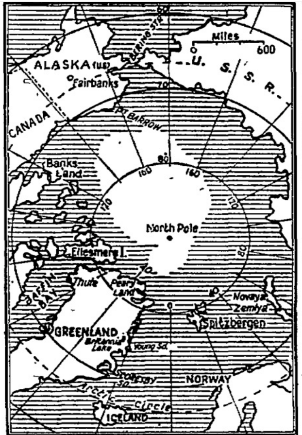 Mapa del Ártico publicado por The Guardian, 19 de septiembre de 1952.