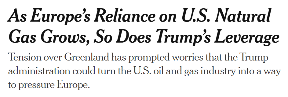 A medida que crece la dependencia de Europa del gas natural estadounidense, también crece la ventaja de Trump. New York Times, 26 de enero de 2026.