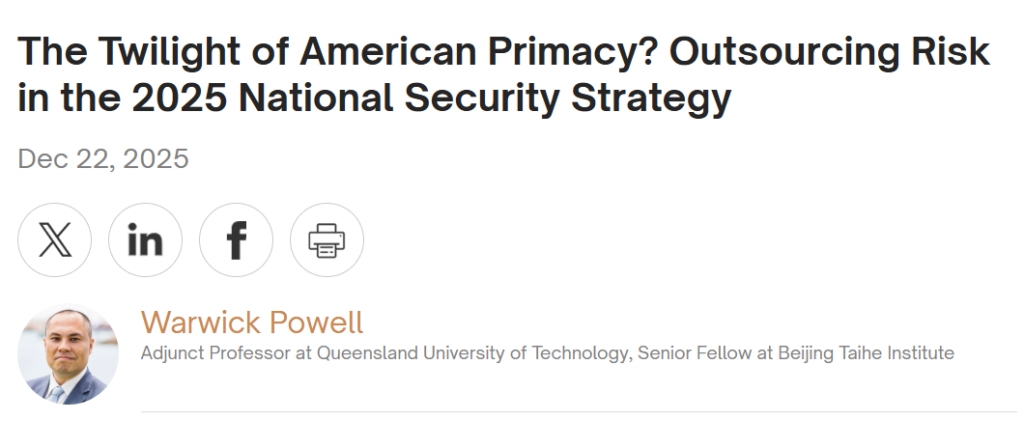 ¿El ocaso de la supremacía estadounidense? Externalización del riesgo en la Estrategia de Seguridad Nacional 2025. China-US focus.