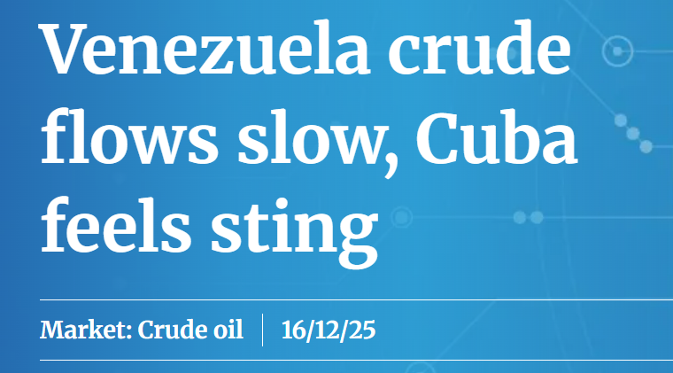 Los flujos de crudo venezolano se reducen, Cuba siente el aguijón. Argus.