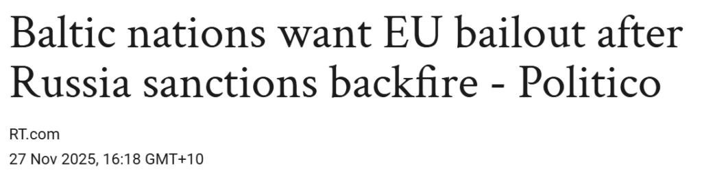 Los países bálticos quieren un rescate de la UE después del efecto inverso de las sanciones a Rusia – Politico. Irish Sun, 27 noviembre de 2025.