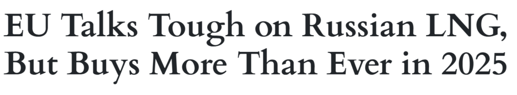La UE tiene un discurso duro sobre el GNL ruso, pero compra más que nunca en 2025. High North News, 30 octubre de 2025.