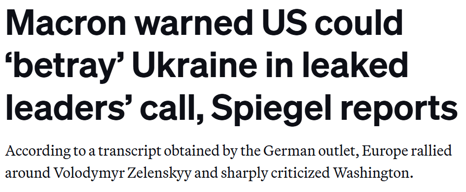 Macron advirtió de que Estados Unidos podría “traicionar” a Ucrania en una llamada filtrada entre líderes, informa Spiegel. Politico, 4 de diciembre de 2025.