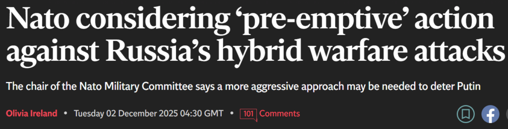 La OTAN considera acción “preventiva” contra los ataques híbridos de Rusia. The Independent, 2 de diciembre de 2025.